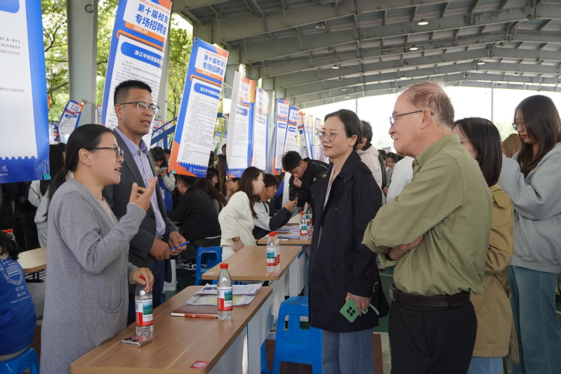 在招聘会现场,校友企业家所展现出的“反哺情怀”,犹如一道独特且亮丽的风景线,生动地呈现在稽山校区风雨操场内。在招聘过程中,校友们不仅以高度负责的态度,细致地讲解企业的发展历程、岗位的工作内容以及晋升路径,更以“学长学姐”的亲和身份,积极分享自身宝贵的职业成长经验。针对毕业生所关心的“简历优化技巧”“面试应答策略”“职场适应方法”等关键问题,校友们给予了一对一的精准指导。