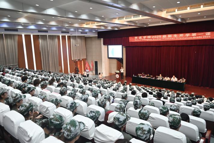 开学第一课在副校长陈文涛轻唱英语歌曲的互动中拉开序幕。他在热烈欢迎全体新生后,以“认识校院、认识自我、享受大学、成就独特自我”为核心脉络展开分享。一方面,他深入解读学校的学科布局与外语人才培养特色,展示2025届毕业生考研光荣榜,讲述英语学院优秀校友的成长事迹;另一方面,他融名言警句于人生哲思,激励新生涵养自律、专注与热爱的品格,以阅读积淀气质,通过“阅己”省察、“悦己”丰盈、“越己”突破,在语言研习与文化互鉴中成长为兼具国际视野与人文素养的新时代栋梁。
