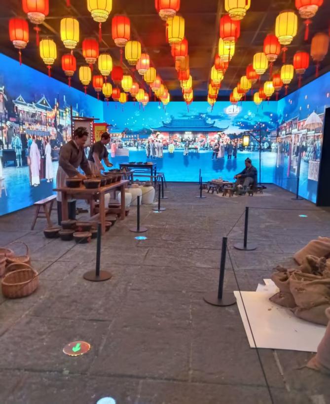 南宋时期,绍兴作为临时都城,迎来经济与文化的繁荣。同学们一同穿越了展馆的“开元灯市”数字场景,沉浸式体验了宋代绍兴元宵灯会的繁华街景,触碰了陆游笔下“城边绿树山阴道”的诗意生活。