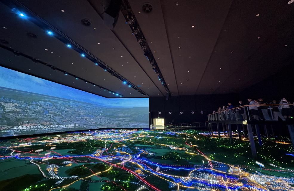 在LED环幕秀中,学生们穿越了绍兴历史轴线:从范蠡筑“蠡城”到南宋“宋城”,绍兴历经三次建城高潮,形成“一河一街”的水乡肌理;回顾了绍兴缔造近代工业转型的历程:以“国际纺都”柯桥的纺织业数字化改造为例,说明传统产业如何通过创新焕发新生;还畅想了绍兴未来发展蓝图:聚焦“胆剑精神”,绍兴以融入长三角一体化、建设共同富裕示范区为目标,打造“智造强市”与“文化名城”双轮驱动的发展路径。