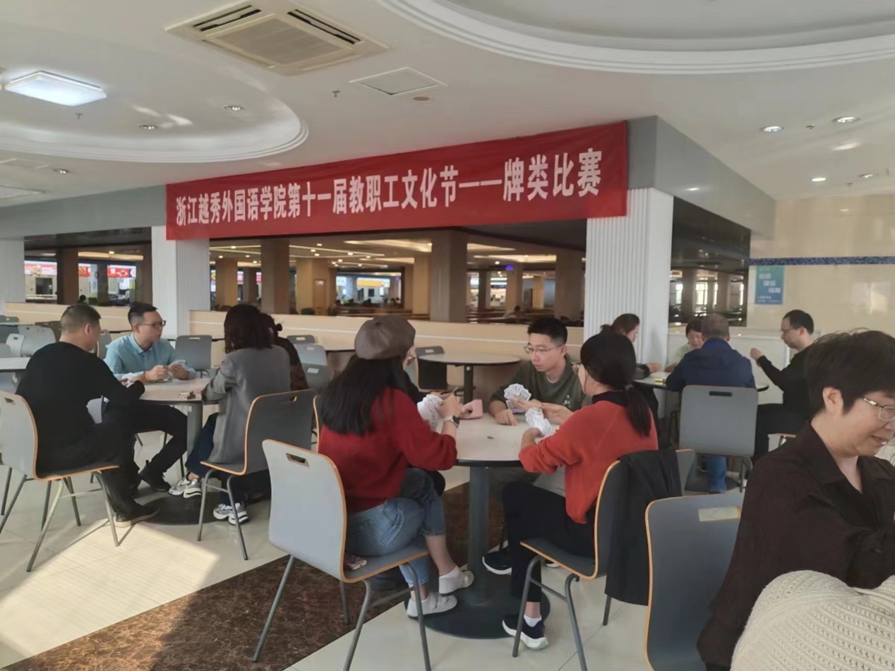 10月24日,由学校工会主办,应用外语学院分工会承办的第十一届教职工文化节——牌类比赛在两校区同步进行。