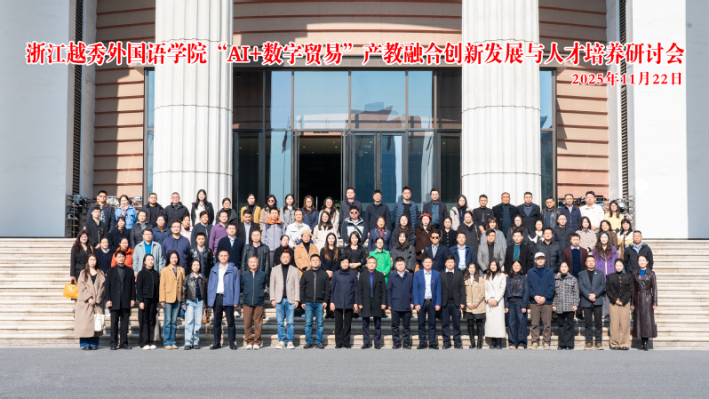 为深入贯彻国家数字经济发展与产教融合战略部署,破解 “AI + 数字贸易” 领域人才培养与产业需求脱节的核心难题,11 月 22 日,“AI + 数字贸易” 产教融合创新发展与人才培养研讨会在浙江越秀外国语学院镜湖校区成功举办。本次活动指导单位为绍兴市商务局,由浙江越秀外国语学院、杭州阿里巴巴海外数字商业有限公司和杭州市电子商务协会联合主办,数字贸易学院、绍兴市电子商务促进会和杭州普特教育咨询有限公司承办,来自9省1市50余所高校领导、教师、10余家数字贸易领域企业高管、行业协会专家齐聚一堂,共探技术赋能下的人才培养新范式。会议分别由数字贸易学院党委书记王庆军、副院长胡建海主持。