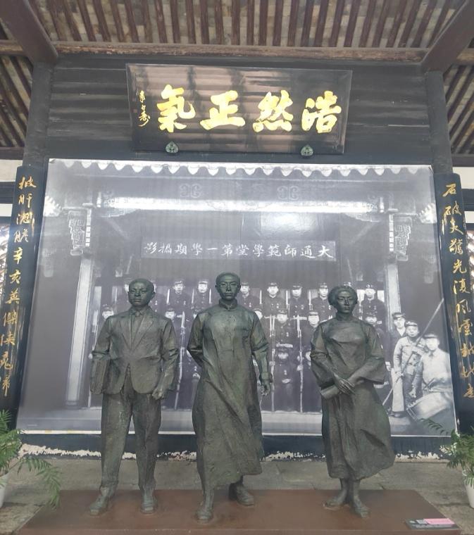 师生们随后移步至绍兴胜利西路的大通师范学堂。大通师范学堂始建于1905年,由光复会领袖徐锡麟、陶成章等人创办,是革命党人以开设体操专修科为名,实为培养训练革命党人军事骨干的学校,是辛亥革命前夕皖浙武装暴动的重要据点。