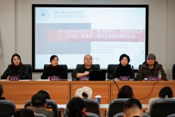 12月31日下午,网络传播学院在4-301会议室召开了2025-2026学年第一学期期末全体教师大会。学院党委书记吴月齐主持会议,学院院长何海翔、教学副院长胡秋芬、科研副院长庄焕明、党委副书记葛丹丹以及全体教职工参加了此次会议。