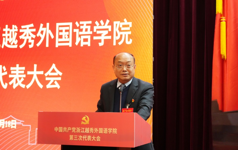 1月18日,中国共产党浙江越秀外国语学院第三次代表大会圆满完成各项议程,在镜湖校区图书馆报告厅胜利闭幕。校长雍和明主持闭幕式。