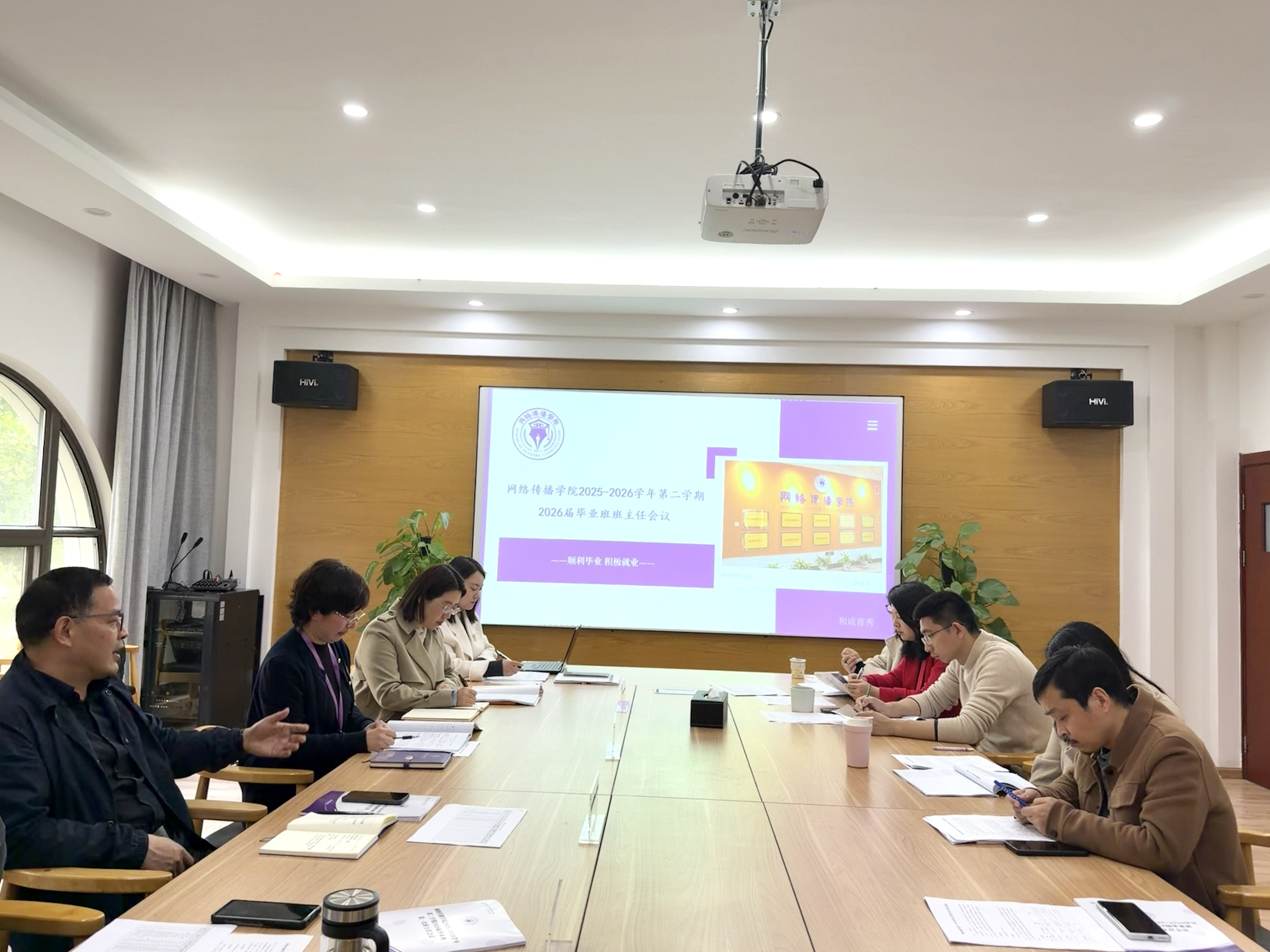 3月26日中午,网络传播学院在4-217会议室召开2026届毕业班班主任会议。学院党委书记朱云祥、副院长胡秋芬、庄焕明出席,综合办、学工办、毕业班辅导员班主任参会,会议由党委副书记葛丹丹主持。