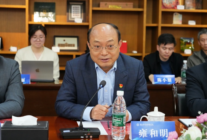 雍和明代表学校致辞,向长期以来关心支持学校建设发展的国信证券浙江分公司各位领导表示衷心感谢,并简要介绍了学校的发展历程、特色亮点、办学成绩和下一步发展目标等基本情况。雍和明指出,45年来,学校坚持政治引领、内涵提升、守正创新、砥砺奋进、追求卓越,取得了跨越式发展,成为全国具有硕士学位授予权的9所民办高校之一,综合实力位居全国民办高校前列。国信证券浙江分公司在财富管理、投资者教育、校企合作等领域走在行业前列,彰显了社会责任与担当,为高校金融人才培养提供了宝贵的行业经验和资源支撑。此次共建,是校企优势互补、互利共赢的战略携手,双方将以党建共建为契机,不断拓宽合作领域,重点在人才培养、实践育人、实习就业等方面开展合作,实现组织共建、资源共享、发展共赢,共同打造校企合作、双向赋能的新典范。