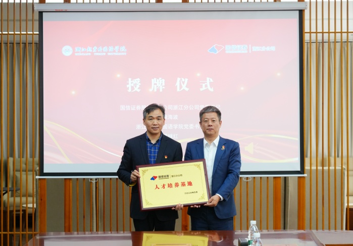 会上,双方互授“国信证券浙江分公司人才培养基地”和“浙江越秀外国语学院大学生就业实习基地”牌。国信证券浙江分公司金色阳光投资顾问部总经理李伟波还作了题为《美伊冲突背景下的大类资产配置思考》的专题讲座。