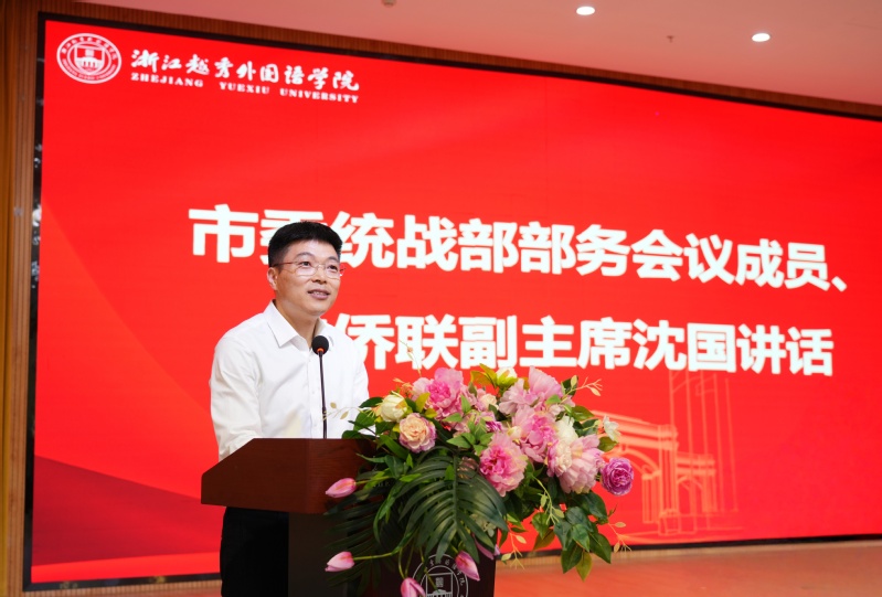 沈国代表绍兴市委统战部、市侨联,向学校侨(留)联会的成立表示热烈的祝贺。他指出,越秀作为国际化特色鲜明的高校,不仅为社会培养了大批高素质应用型人才,更成为了汇聚侨界力量、链接中外交流的重要平台,在推进学校发展和服务绍兴经济社会发展等方面发挥了积极作用。他对新成立的侨(留)联会提出了三点希望:一是坚持政治引领,筑牢思想根基;二是发挥独特优势,汇聚人才合力;三是加强自身建设,提升服务能力。