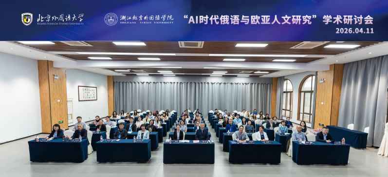 2026年4月10日至11日,“AI时代俄语与欧亚人文研究学术研讨会”在浙江越秀外国语学院镜湖校区召开。来自北京大学、复旦大学、南京大学、北京外国语大学、北京师范大学等多所知名高校领导、俄语学界专家学者和期刊编辑齐聚一堂,围绕人工智能时代俄语学科建设、欧亚区域国别研究及融通型人才培养等核心议题展开深入研讨。