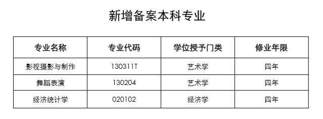 近日,教育部公布2019年度普通高等学校本科专业备案和审批结果,我校申报的影视摄影与制作、舞蹈表演、经济统计学三个本科专业成功获批。