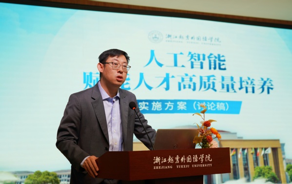 教务处处长尚云峰对学校人工智能赋能人才高质量培养实施方案进行了解读。方案明确了以“学生发展为中心、人工智能素养为引擎、未来学习中心建设为基座”的建设思路,提出了构建具有越秀特色的“人工智能+”高质量人才培养体系的总体目标,并详细阐述了“九大体系”建设任务与分阶段发展目标,为全校全面推进人工智能赋能教育教学提供了行动指南。