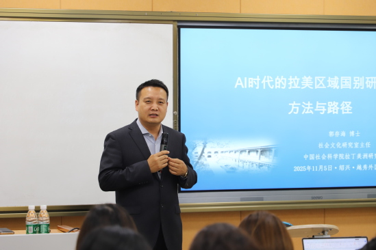 为回应人工智能对人文社科领域的深刻影响,中国社会科学院拉美研究所郭存海教授莅临西方语言学院,为师生们带来一场题为“AI时代的拉美区域国别研究:方法与路径”的讲座。此讲座于2025年11月5日下午在西语学院D329成功举办,学院相关领导、各系教师代表及部分学生参加了本次活动,现场气氛热烈。