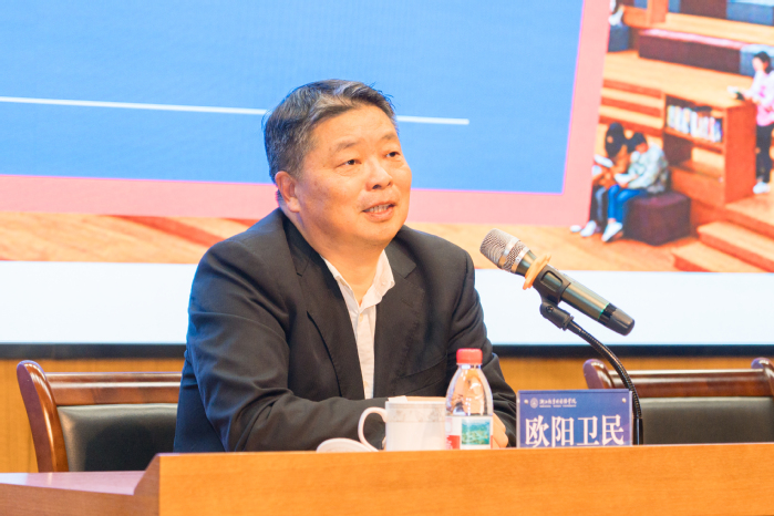 2025 年 11 月 7 日,浙江越秀外国语学院 “商学名家讲堂”揭牌启动仪式暨首场报告会在镜湖校区图书馆报告厅举行。中国金融学会副会长、国家开发银行原行长、广东省原副省长欧阳卫民博士应邀为“商学名家讲堂”启动揭牌并作首场报告。