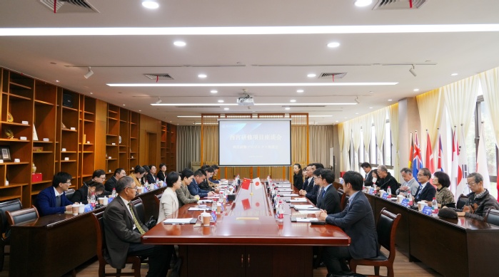 葛金玲向石井登志郎一行介绍了学校的发展历程、学科专业与办学成果。双方就日语专业学生的培养现状、存在的问题及发展前景展开了交流讨论。石井登志郎一行还与曾参加西宫研修项目的历届研修生代表座谈,我校东语学院胡燕静、王芳、黄燕回顾了自己在西宫市研修期间的学习经历、文化体验与收获的友好情谊,表示这段宝贵的经历不仅拓宽了国际视野,也让她们对中日文化交流有了更深的理解和体会。