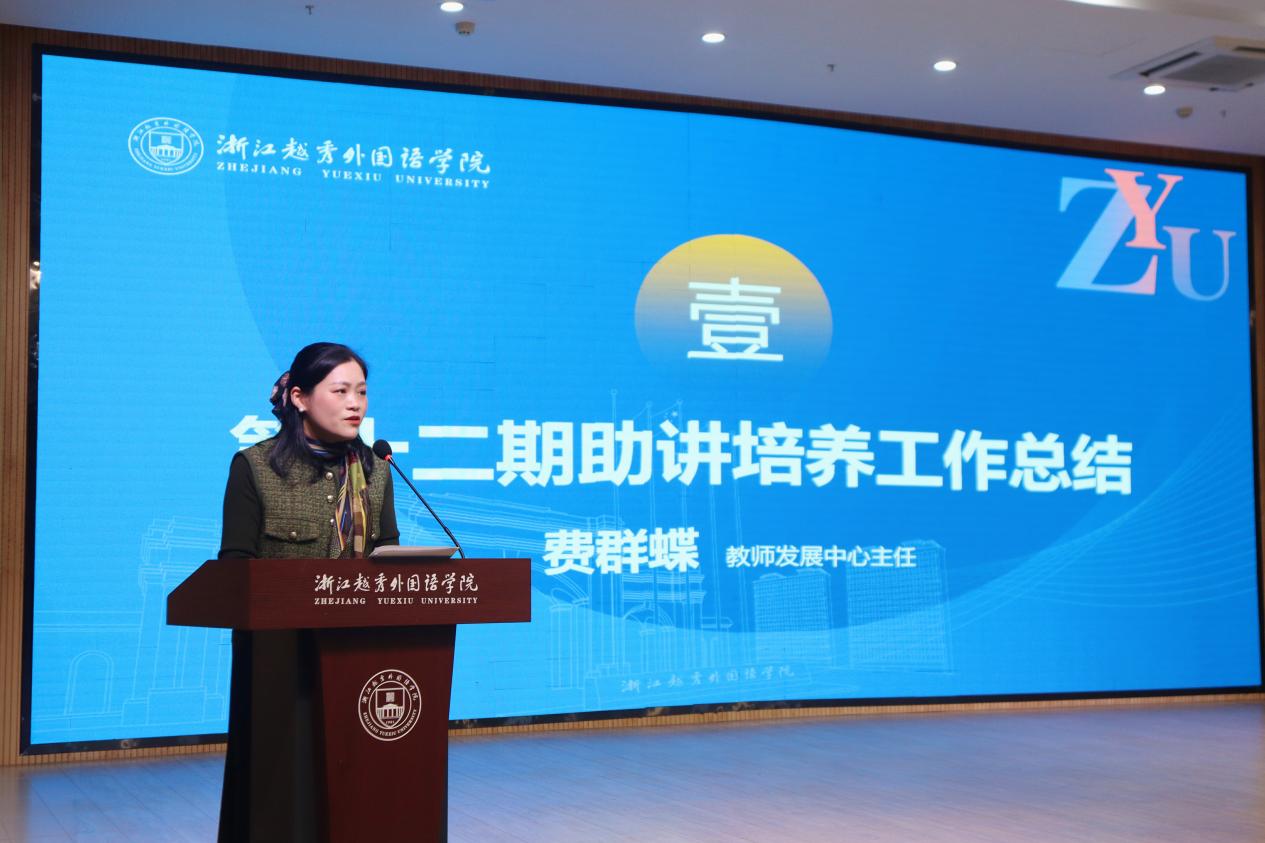 教师发展中心主任费群蝶对第十二期助讲培养工作进行了全面总结,肯定第十二期青年教师助讲培养成效的同时,也指出存在的问题。她强调,青年教师培养是一项复杂的系统工程,离不开学校的持续支持、学院领导的高度重视和全体教师的共同参与。