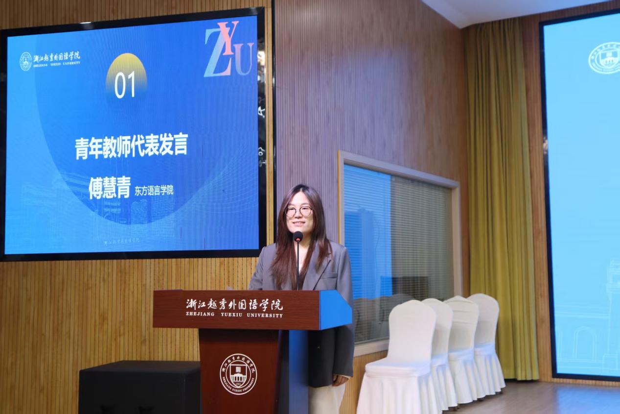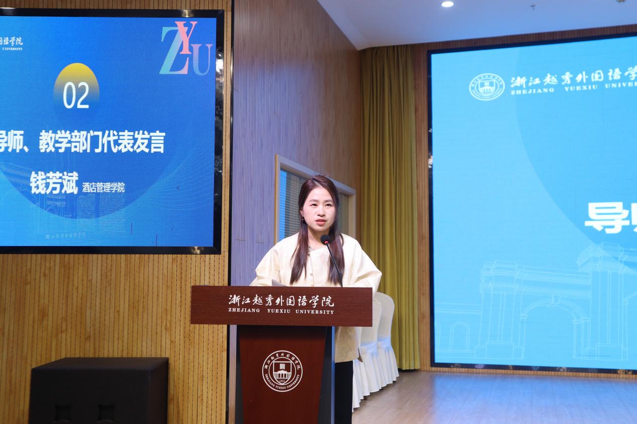 东方语言学院傅慧青老师作为青年教师代表发言,表达了在教学路上潜心求索、不负期望的决心。酒店管理学院钱芳斌老师则代表导师及教学部门分享了作为导师的育人初心,并表示将全力以赴助力青年教师成长。