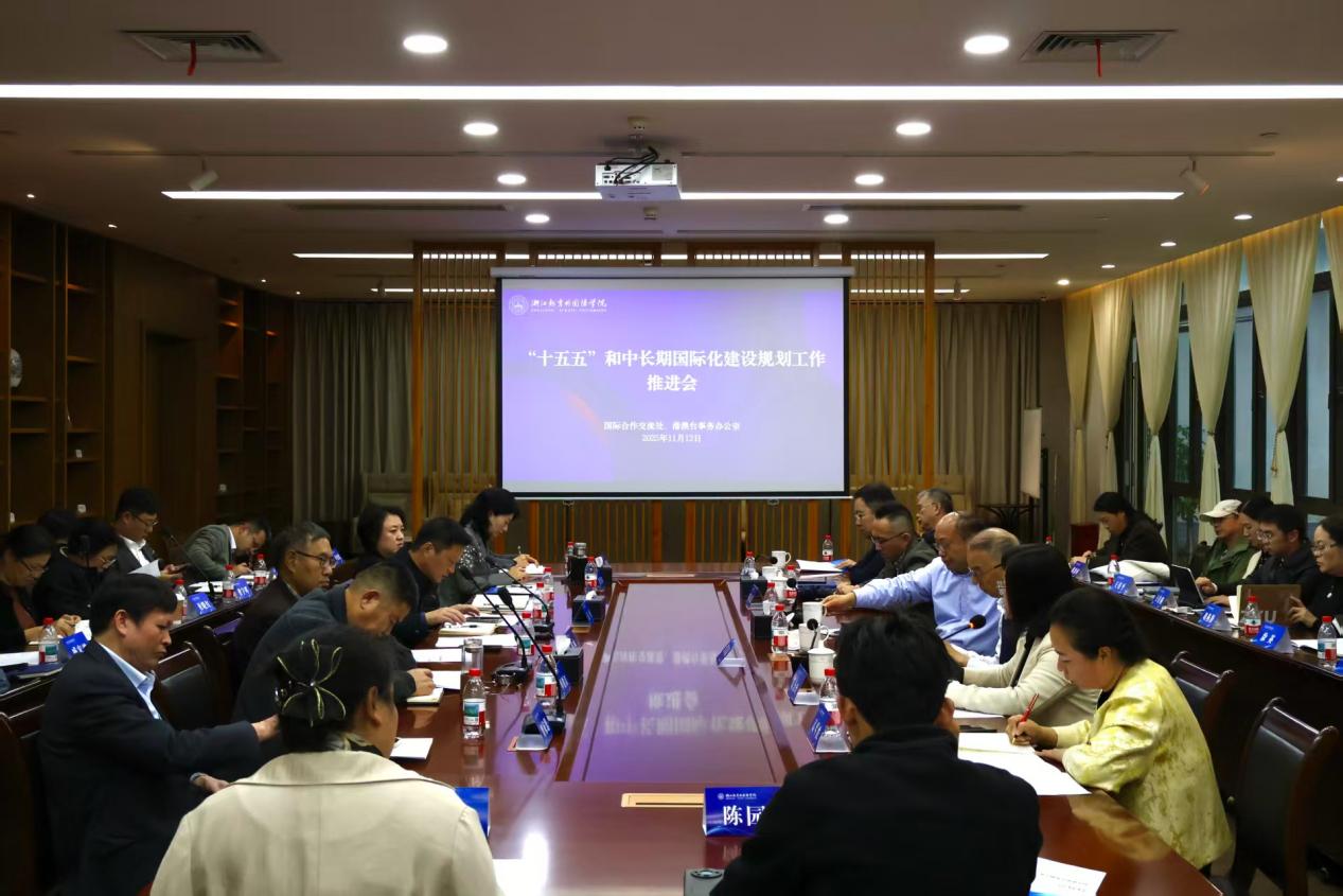 为科学谋划学校“十五五”和中长期国际化发展,11月12日,我校在镜湖校区召开“十五五”和中长期国际化建设规划工作推进会。校长雍和明,特聘教授费君清,副校长陈文涛,副校长葛金玲,党委副书记、纪委书记高志栋,党委副书记、财务总监高琴波,校长助理朱新福出席会议。各二级学院院长、外事工作负责人,以及校长办公室、教务处、科研处、人事处、学生处、国际合作交流处、财务处等职能部门负责人参加会议。会议由葛金玲主持。