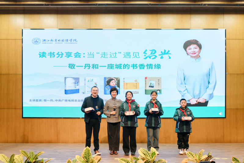 12月5日,“当‘走过’遇见绍兴:敬一丹和一座城的书香情缘”读书分享会在浙江越秀外国语学院镜湖校区图书馆报告厅隆重举行。学校特聘教授费君清、常务副校长魏小琳、党委副书记兼纪委书记高志栋,以及各部处、各学院师生代表300余人齐聚一堂,与中央广播电视总台播音指导、电视节目主持人敬一丹共赴一场跨越时空的心灵对话。