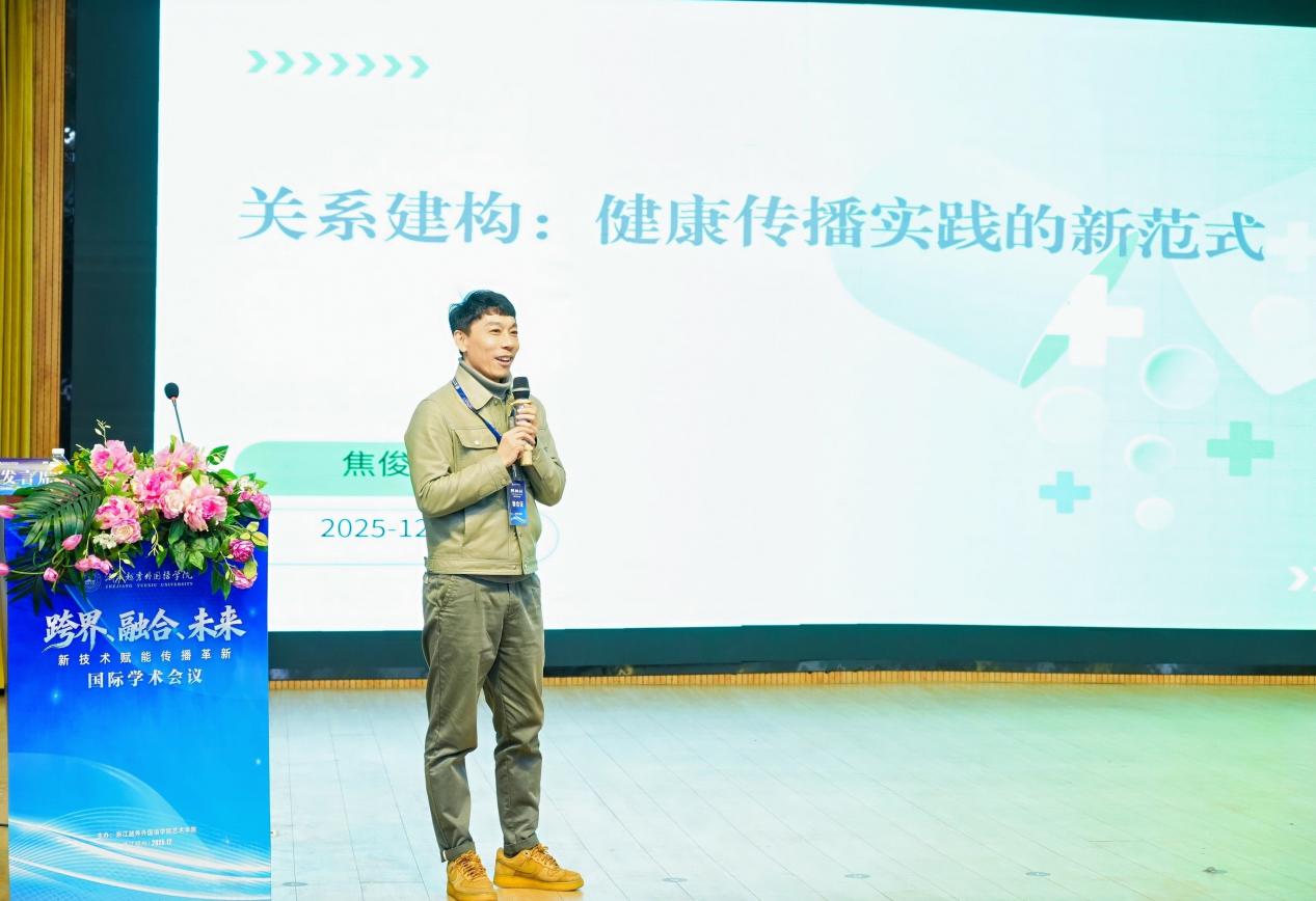 浙江传媒学院新闻与传播学院副院长焦俊波教授以《从信息传递到关系建构:关系范式下健康传播实践研究》为题,聚焦健康传播,阐释传播技术从信息传递向关系建构的范式转变。