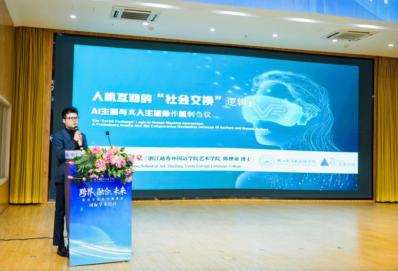 我校艺术学院教师陈枻豪博士在《人机互动的“社会交换”逻辑: AI主播与真人主播协作机制刍议》发言中剖析了人机协作的“社会交换”逻辑,介绍了新背景下如何更好地进行人机协作。