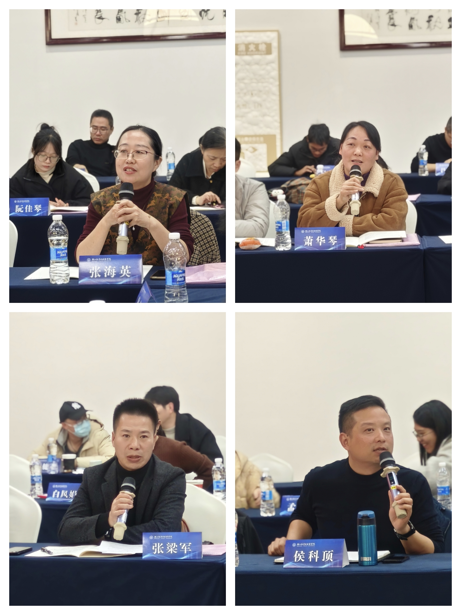 (绍兴市高级中学校长张海英、绍兴市迪荡中学校长萧华琴、新昌县梅渚小学副书记张梁军、东白湖镇中心学校校长候科顶分别介绍本校的基本情况)