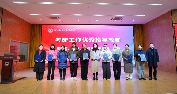 罗继红书记宣读了2025年考研表彰文件,与会校领导对在考研升学工作中表现突出的学院、专业和教师予以表彰。
