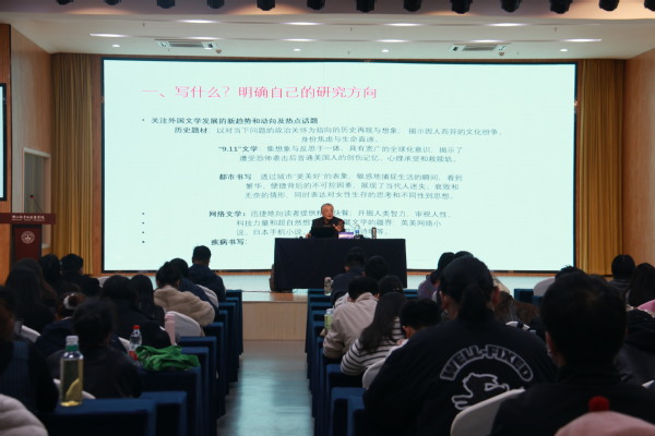 朱新福围绕“青年教师科研能力培养”主题,从自身研究经历出发,以外国文学为例,强调关注外国文学发展的新趋势、新动向及热点话题,了解研究的前沿与热点。同时,需注重“中国视角”的融入,体现研究的现实意义与学术价值。