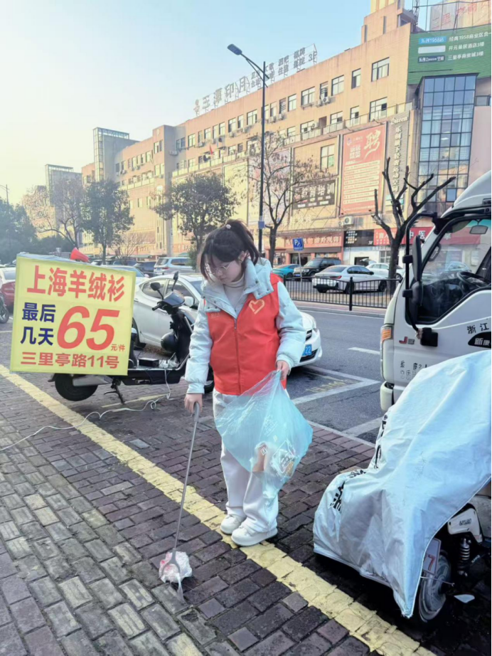 寒假期间,东语学院日语2303班的曾佳晔身着志愿马甲,走进绍兴沈园参与环保志愿活动。曾佳晔手持工具捡拾垃圾,用行动守护园林美景,践行文明新风。以微薄之力爱护环境,让古迹风光更洁净,在实践中传递温暖与责任。德育实践,让每一次弯腰都成为最美的风景。