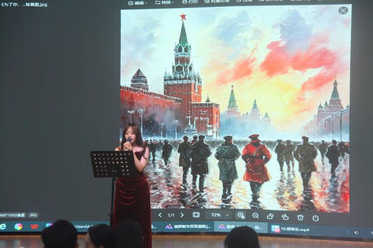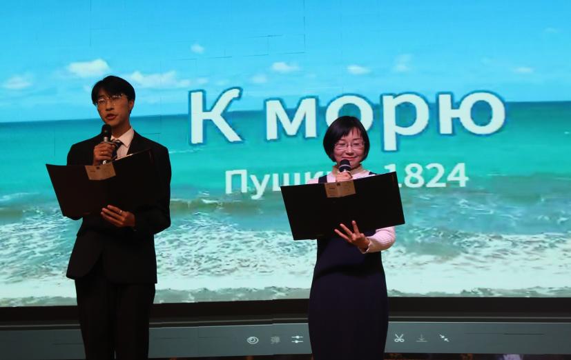 在随后举行的联欢活动中,中俄师生表演了精彩节目,歌曲、中俄舞蹈、双语朗诵、戏曲、相声、器乐弹唱等,充分展现了两国学生的青春风采与文化交融的独特魅力。俄罗斯民族舞蹈《田野中的白桦树》《冰之舞》《莫斯科在跳舞》舞姿优美、异域风情浓郁;《卡琳卡》节奏明快、喜庆热烈;《莫斯科郊外的晚上》温婉典雅,将现场氛围再次推向高潮。中俄双语朗诵《致大海》、俄语诗朗诵《春潮》以诗传情、意境悠长,尽显语言与文学之美。