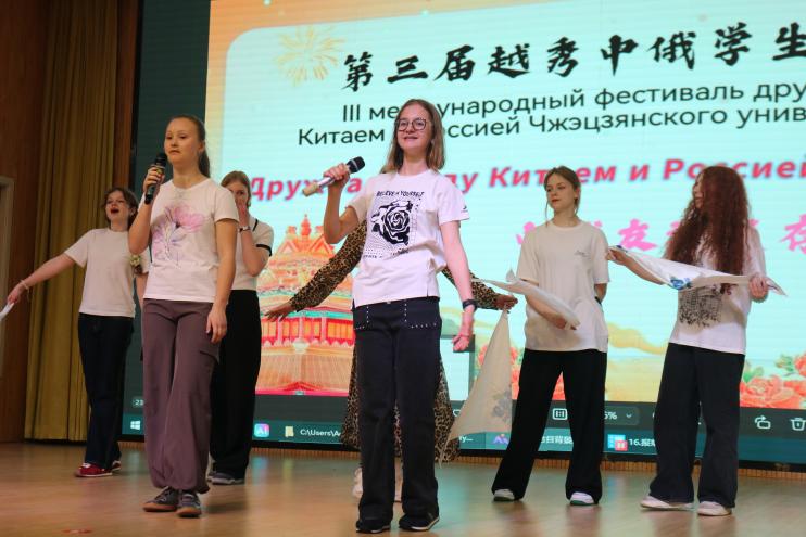 4月3日晚,第三届中俄学生联谊会在我校镜湖校区越秀厅举行。来自俄罗斯莫斯科2010中学、1547中学、1569中学、梅季希向量中学、成功中文学校的180名师生,与我校西方语言学院、国际教育学院师生代表齐聚一堂,中俄青年同台联欢,共叙友情、共话未来。